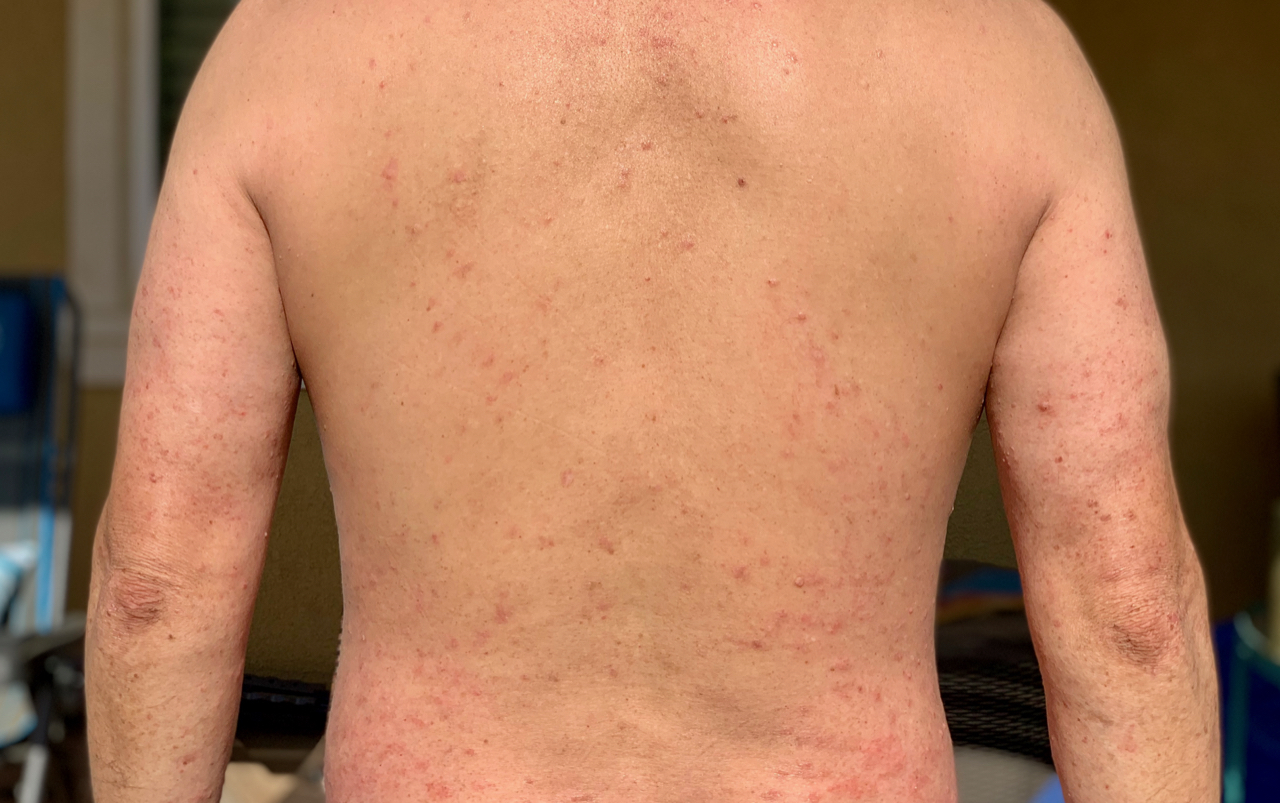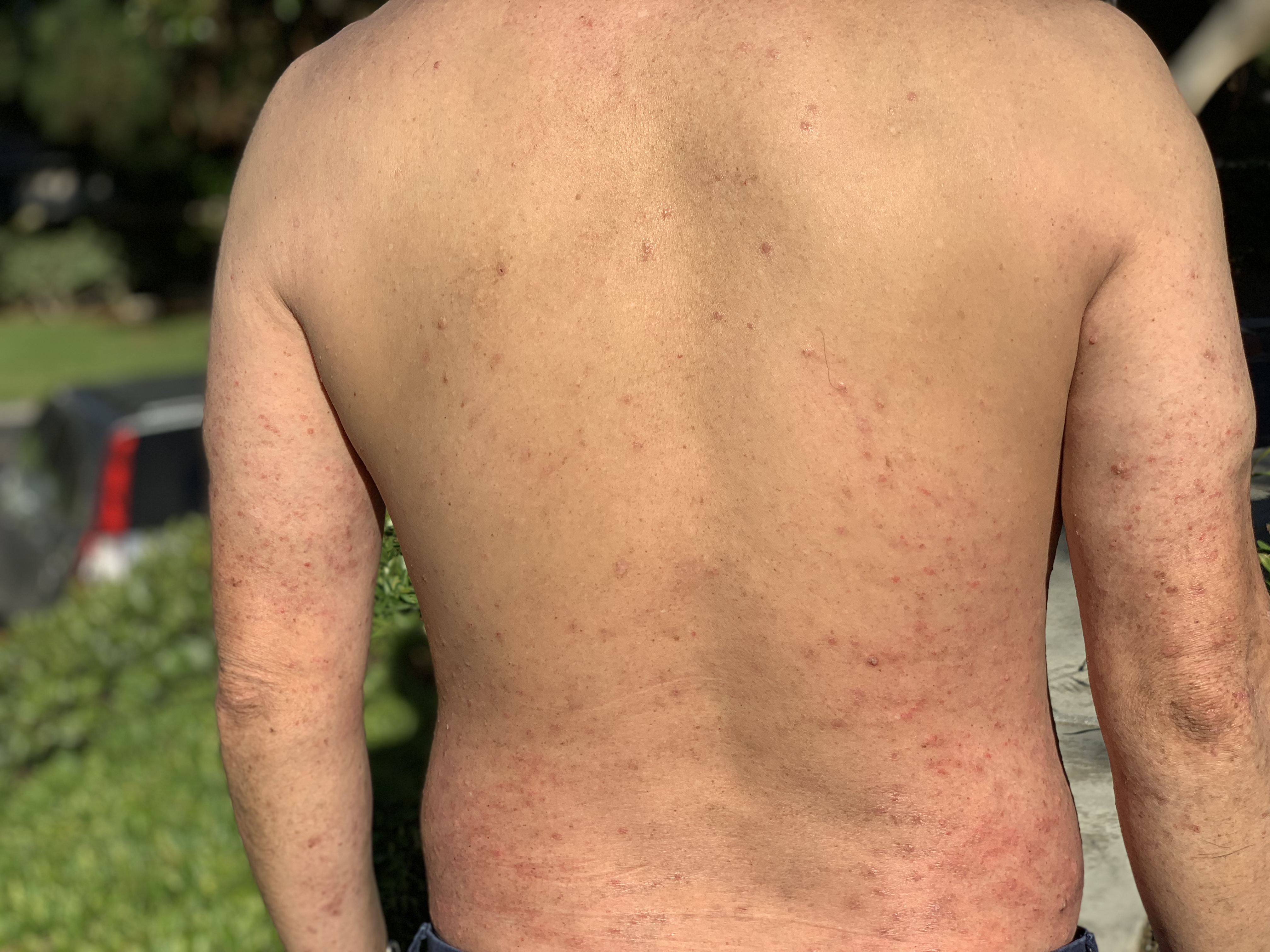 The photos above of my back and legs were taken on July 19th around week 7. Below are photos of my back and legs on September 22nd at week 16. The improvement appears to be stable, although I had a bad flare in between from weeks 11-14.